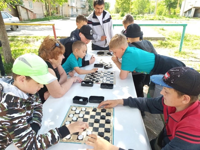 В поселке Пятилетка, во дворе дома № 14 по ул. Новой, был проведен шашечный турнир среди местной детворы.