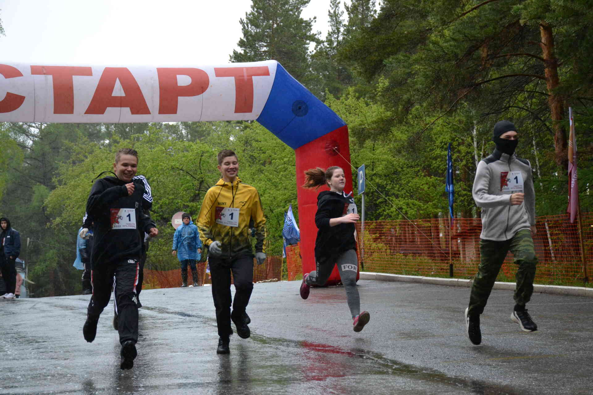 Проливной дождь не помешал спортсменам преодолеть сложную трассу с препятствиями.
