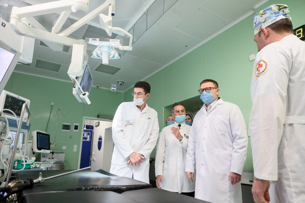 Глава региона Алексей Текслер с рабочим визитом посетил Челябинскую областную клиническую больницу, где ознакомился с работой новых операционных блоков.
