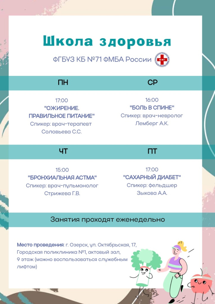 Рады сообщить, что на базе городской поликлиники стартует обновленная Школа здоровья, которая будет доступной для всех жителей города. Цель школы — повысить уровень осведомленности горожан о здоровье и профилактике наиболее распространенных заболеваний, а также улучшить качество жизни.