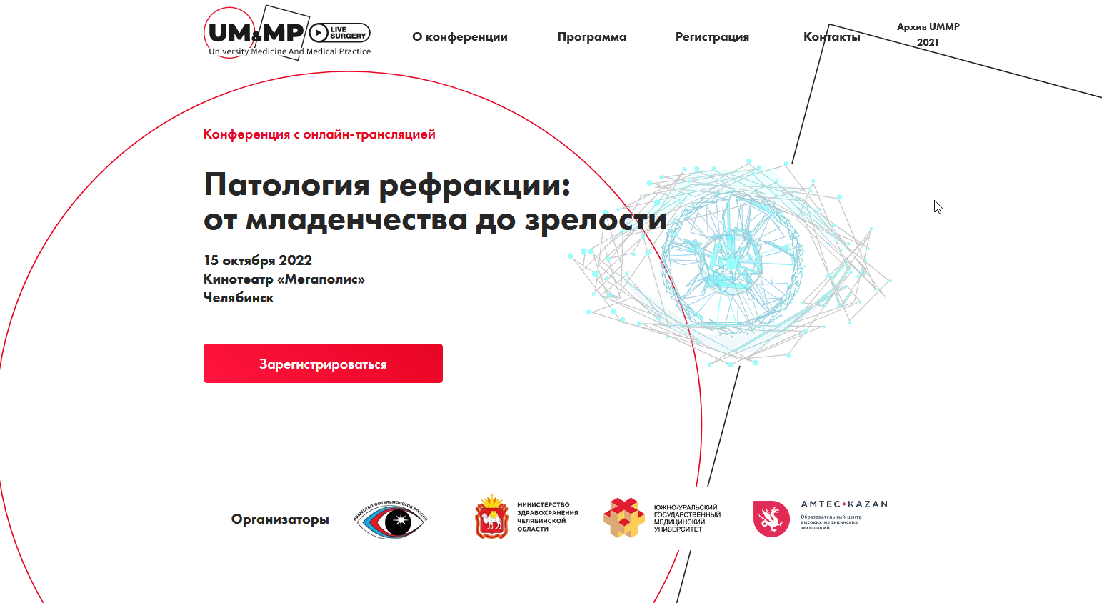 Приглашаем вас принять участие в межрегиональной научно-практической конференции офтальмологов «Патология рефракции: от младенчества до зрелости», которая состоится 15 октября 2022 года в челябинском кинотеатре «Мегаполис» в очном формате. Также можно будет присоединиться к видеотрансляции на сайте мероприятия https://um-mp.ru . Конференция организована кафедрой Глазных болезней ЮУГМУ и посвящена рефракционным нарушениям у пациентов всех возрастных категорий, что будет интересно детским и взрослым специалистам амбулаторной помощи и офтальмохирургам.