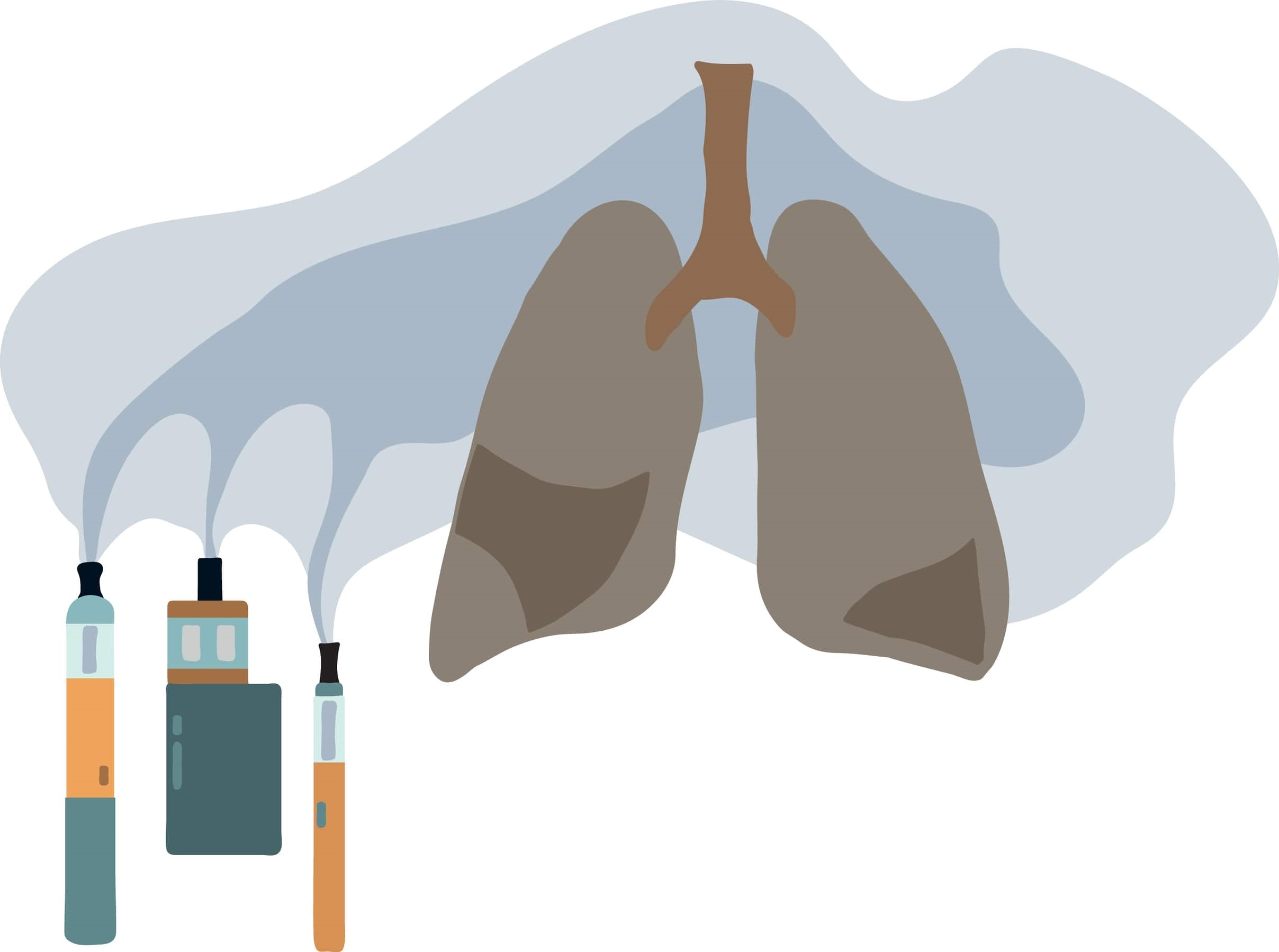 Кроме того, в жидкость для вейпов добавляют специальные растворители, чтобы смесь «правильно» испарялась, в качестве которых могут использоваться глицерин, пропиленгликоль, масляный раствор витамина Е и другие добавки. При нагревании эти химикаты должны превращаться в пар, однако часть попадает в лёгкие в виде капель и оседает там. Попадание масла в лёгкие очень опасно для здоровья и может привести к смерти. Когда человек вдыхает масло, лёгкие воспринимают его капли, как инородный объект и выдают иммунный ответ. Он приводит к воспалению и опасному накоплению жидкости в лёгких, что приводит к так называемой липоидной пневмонии.