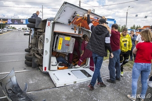 В результате произошло опрокидывание автомобиля скорой помощи. На место тут же выехали две медицинские бригады. Помимо пациента, находившегося в машине, пострадали два сотрудника скорой. Им также потребовалась госпитализация. Об этом сообщил главный врач Станции скорой медицинской помощи Магнитогорска Александр Шумков.