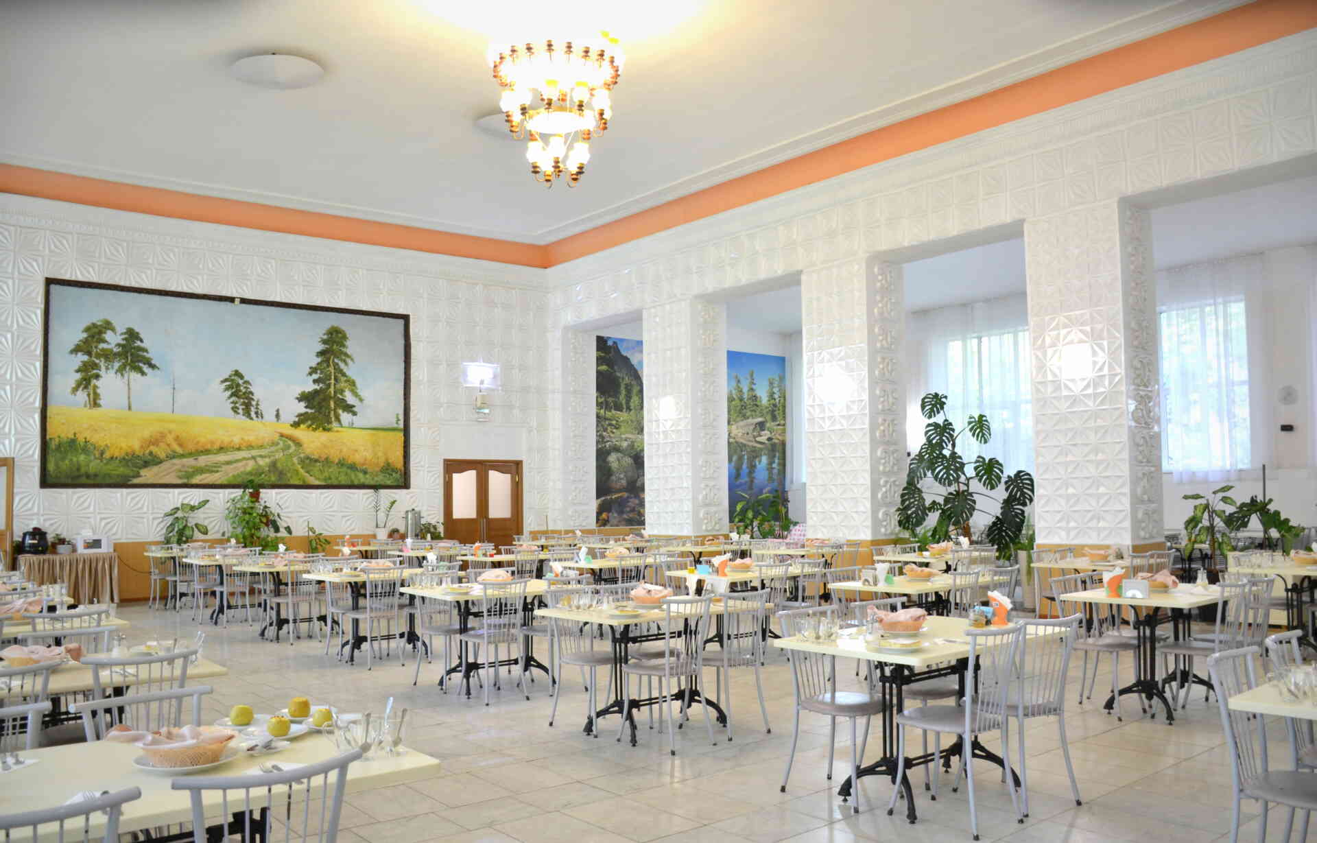 Отдых отдыхом, а завтрак, обед и ужин в «Сосновой горке» – по расписанию. В просторной величественной столовой с колоннами гостей ждут очень вкусные блюда, строго сбалансированные по соотношению белков, жиров, углеводов и просчитанные по количеству калорий. Одно из нововведений – заказное меню, есть и шесть видов диетического меню.