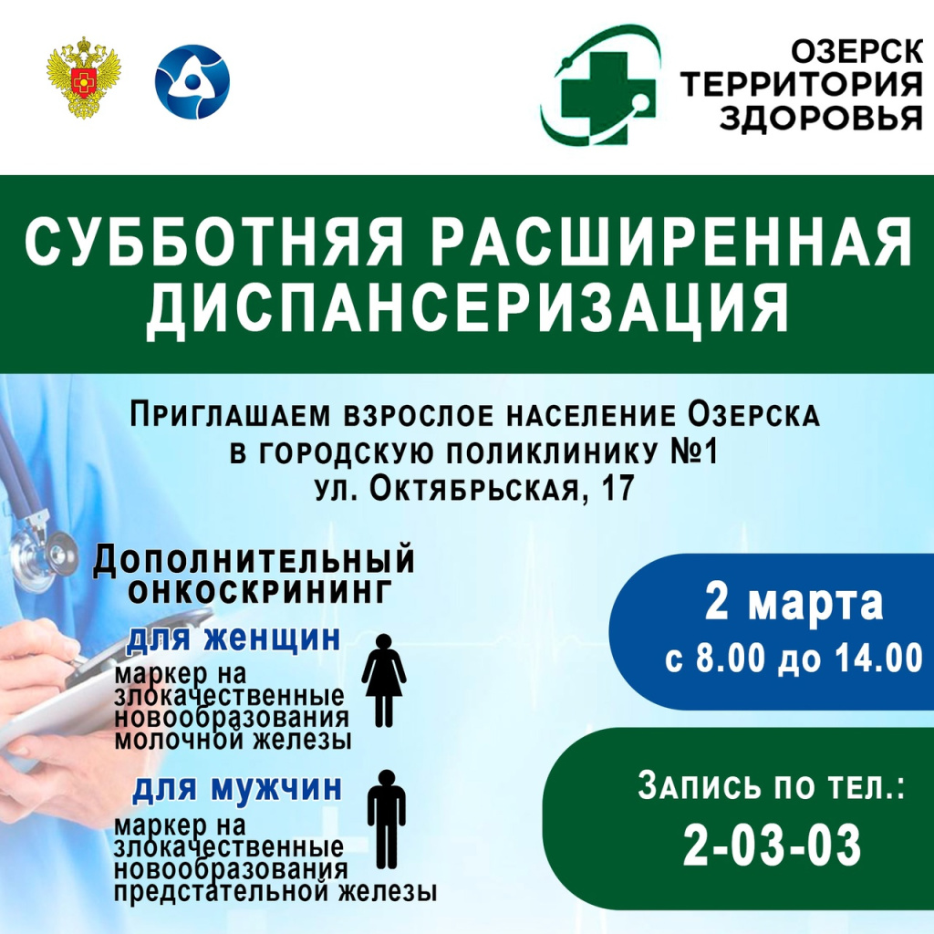 Записаться на субботнюю диспансеризацию можно по телефону Единого информационного центра: 2-03-03.