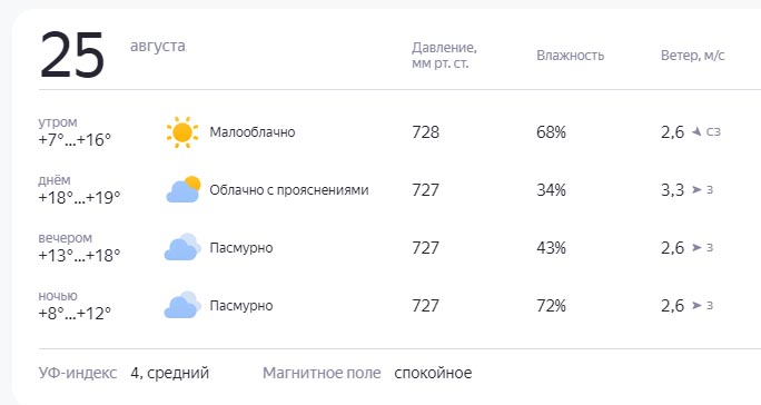Днем температура воздуха не поднимется выше +19, а ночью температура воздуха опустится до +8 градусов.