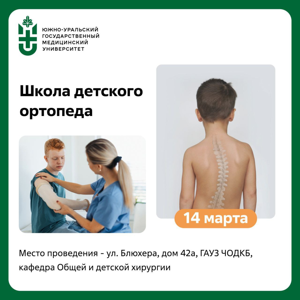 14 марта состоится Школа детского ортопеда. Место: ул. Блюхера, дом 42а, ГАУЗ ЧОДКБ, кафедра Общей и детской хирургии.