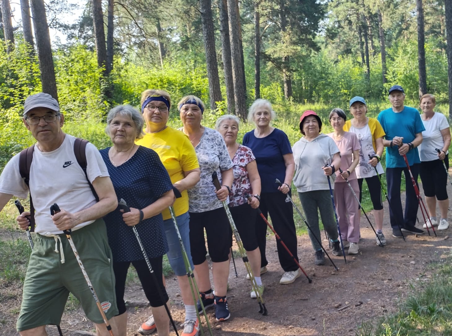 Где может состояться общение? Например, в группе людей, практикующих северную ходьбу. Посмотрите наши фотографии. Чем занимаются члены группы скандинавской ходьбы «Ходоки»? Ежедневно тренируются на свежем воздухе в городском парке, участвуют в Фестивале северной ходьбы, делают «10 000 шагов к жизни» во время Всероссийской акции, встречаются с друзьями из клуба «Нордики», занимаются в нашем отделе медицинской профилактики кинезиологическими упражнениями для сохранения здоровья мозга, а главное – общаются. Присоединяйтесь!»