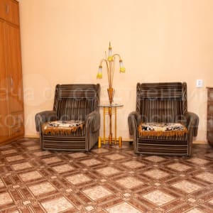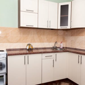 В квартире имеется всё что нужно для проживания: кухонный гарнитур, обеденная зона, холодильник, электрическая плита, микроволновая печь, электрический чайник, стиральная машина, большой шкаф для хранения одежды, комод, ЖК телевизор и даже обогреватель, а также огромная двуспальная кровать 180х200 (ортопедическое основание) (с дорогим ортопедическим матрасом Ascona).