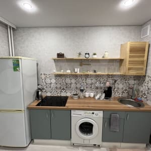 В квартире находится: Микроволновая печь, стиральная машина, холодильник, телевизор ,2х-спальная кровать, фен , В квартире есть чистая питьевая вода .